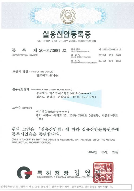 (실용신안등록증)벌크헤드 유니온