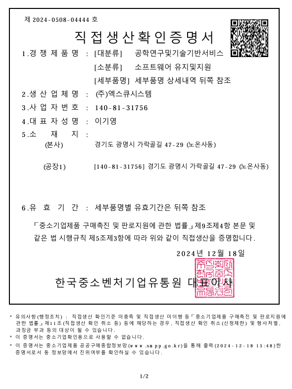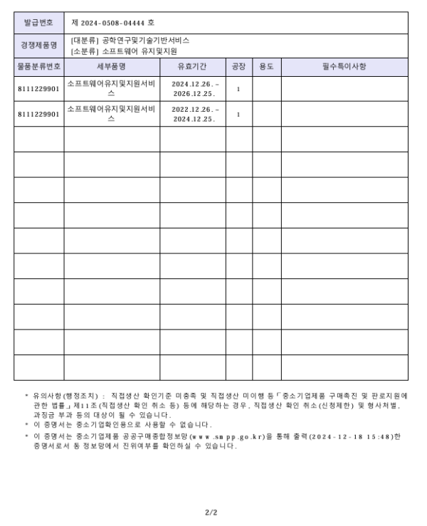 (직접생산)소프트웨어유지및지원서비스