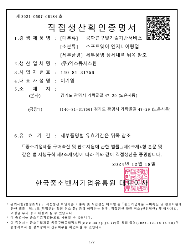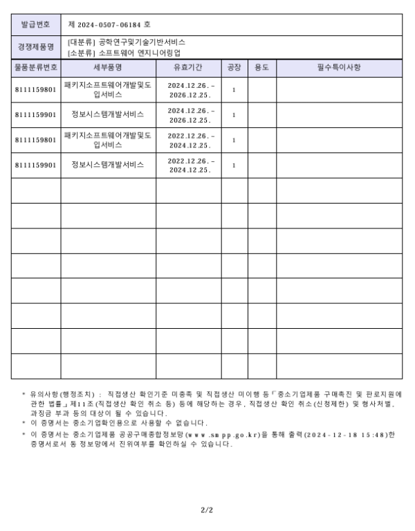 (직접생산)소프트웨어 엔지니어링업